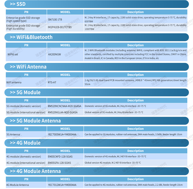 7. Supports high-capacity NVMe SSD storage and features 4G/5G/Wi-Fi/Bluetooth wireless communication capabilities.