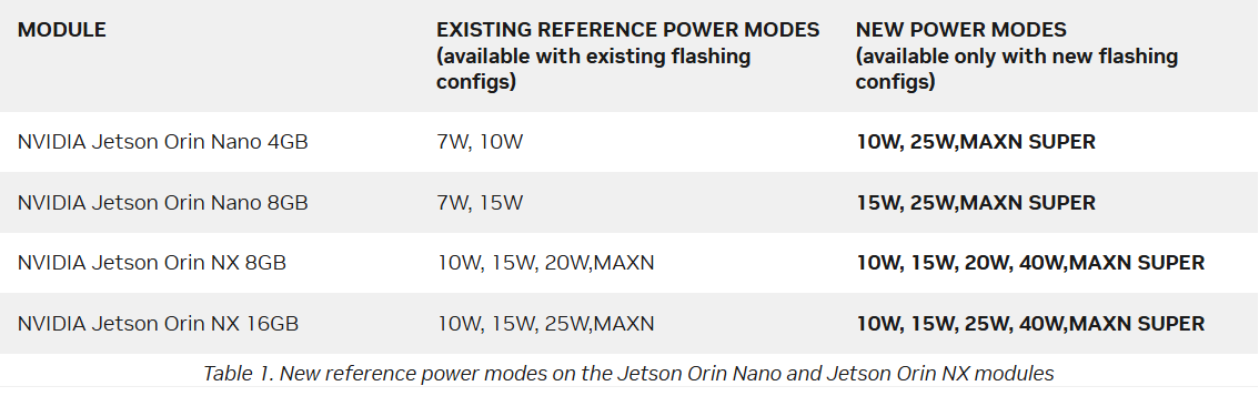 As shown in the table, the Jetson Orin Nano modules now support a new 25W mode, along with an ultra-powerful, unrestricted MAXN SUPER mode. Similarly, the Jetson Orin NX modules gain access to a high-power 40W mode and the MAXN SUPER mode as well. Of course, this leap in performance comes at a cost — it means carrier boards designed around these modules must undergo a significant power supply upgrade to meet the increased demands of the core.