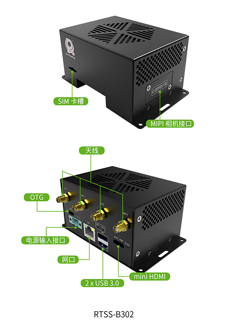 Introducing the Feiyun Smart Box RTSS-B302, built around the RTSO-3002 core carrier board: Pre-installed with Ubuntu 20.04 or Ubuntu 22.04, this compact and lightweight system features a rugged yet lightweight aluminum alloy enclosure for excellent heat dissipation. Its ergonomic design includes side flanges for easy on-site installation. Engineered for 24/7 stable operation with high MTBF in demanding environments, the RTSS-B302 offers rich I/O interfaces, low power consumption, and a high level of system security — making it an ideal solution for harsh on-site deployment scenarios.
