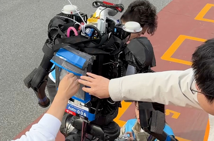2026 Beijing Yizhuang humanoid robot half marathon robot cools down at supply station