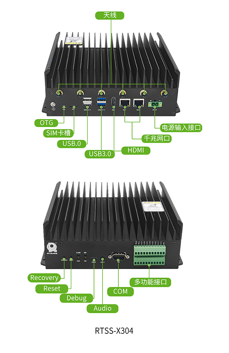 Introducing the Feiyun Smart Box RTSS-X304, powered by the RTSO-3004 core carrier board: The enclosure is crafted from die-cast aluminum with precision CNC machining, featuring a fanless passive cooling design and oversized heat dissipation fins. This ensures reliable 24/7 stable operation (high MTBF) in field deployments, significantly reducing maintenance costs. With rich I/O interfaces, low power consumption, and a high level of system security, the RTSS-X304 is built to meet the demands of even the most challenging on-site deployment environments.