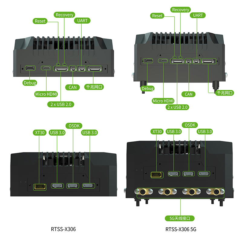 Introducing the Feiyun Smart Box RTSS-X306, powered by the RTSO-3006 core carrier board: Designed with an aluminum alloy enclosure and active cooling, the RTSS-X306 is built to withstand harsher working environments. The OSDK interface features a snap-in terminal block for enhanced stability and protection. It supports DJI's UAV development protocols and is compatible by default with several commercial drone models including the M300, M350, M30, and M30T. Equipped with a wide range of I/O interfaces, it ensures flexible sensor integration. The built-in surface-mounted Wi-Fi 6 module provides stable data exchange and extended communication range. A 5G module is also available for expansion, making the RTSS-X306 an ideal solution for drone-based applications.