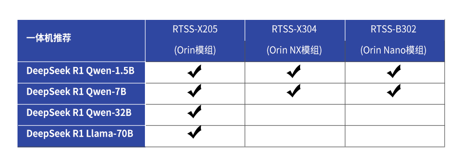 Below are the product models our company recommends for deploying the DeepSeek model at the edge. If you have any related inquiries, please don't hesitate to contact us. We are committed to providing comprehensive support and service.