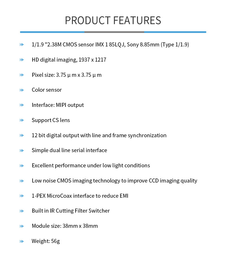 Product description: Leopard MIPI-CSI Camera – IMX185